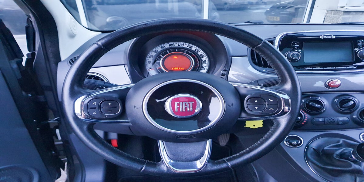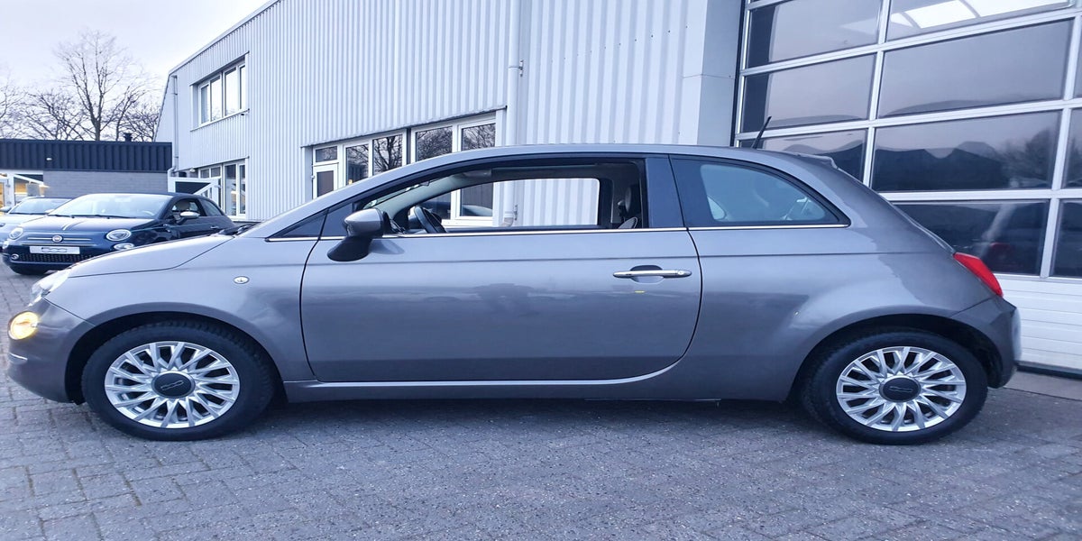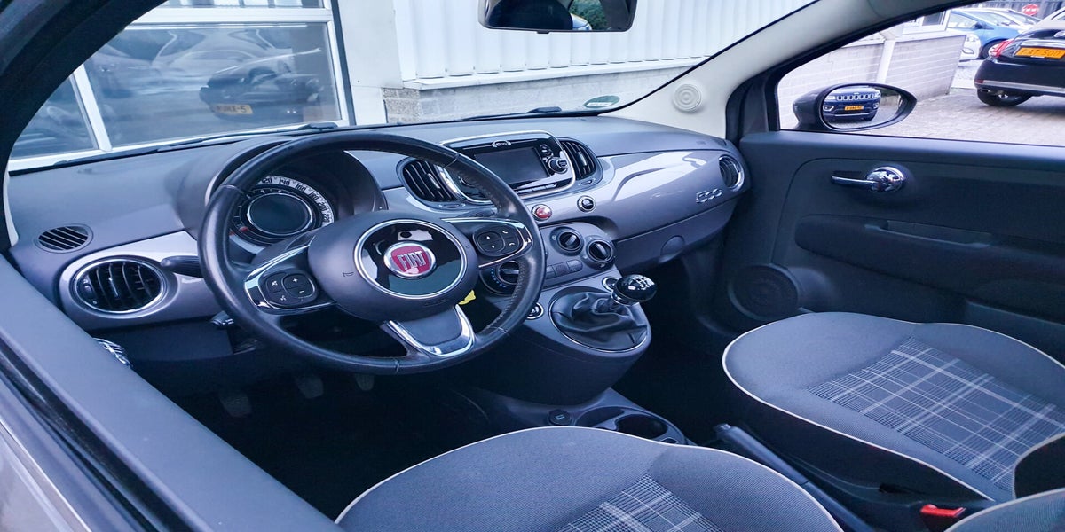 Bovenstaande Fiat 500 lounge betreft een facelift model, waardoor de auto zowel van binnen als van buiten optisch en technisch is vernieuwd ten opzichte van het vorige model. De auto is uitgevoerd met een 1.2 benzine, 4-cilinder motor die een vermogen levert van 69 pk. Het voertuig beschikt over elektrische ramen en spiegels, radio met usb/aux-aansluiting, centrale vergrendeling, boordcomputer met vernieuwde opties zoals o.a. bandenspanningsmeter, panorama dak met zonnewering, spraakbesturing, lederen stuur met stuurbediening, cruise control, mistlampen, 5" Uconnect multimediasysteem met Dab-radio, bluetooth en meer, City stuur (wat zorgt voor een dubbele stuurbekrachtiging), ESP, isofix, spiegels in de lakkleur, airco en 15 inch originele aluminium velgen met allseason banden.