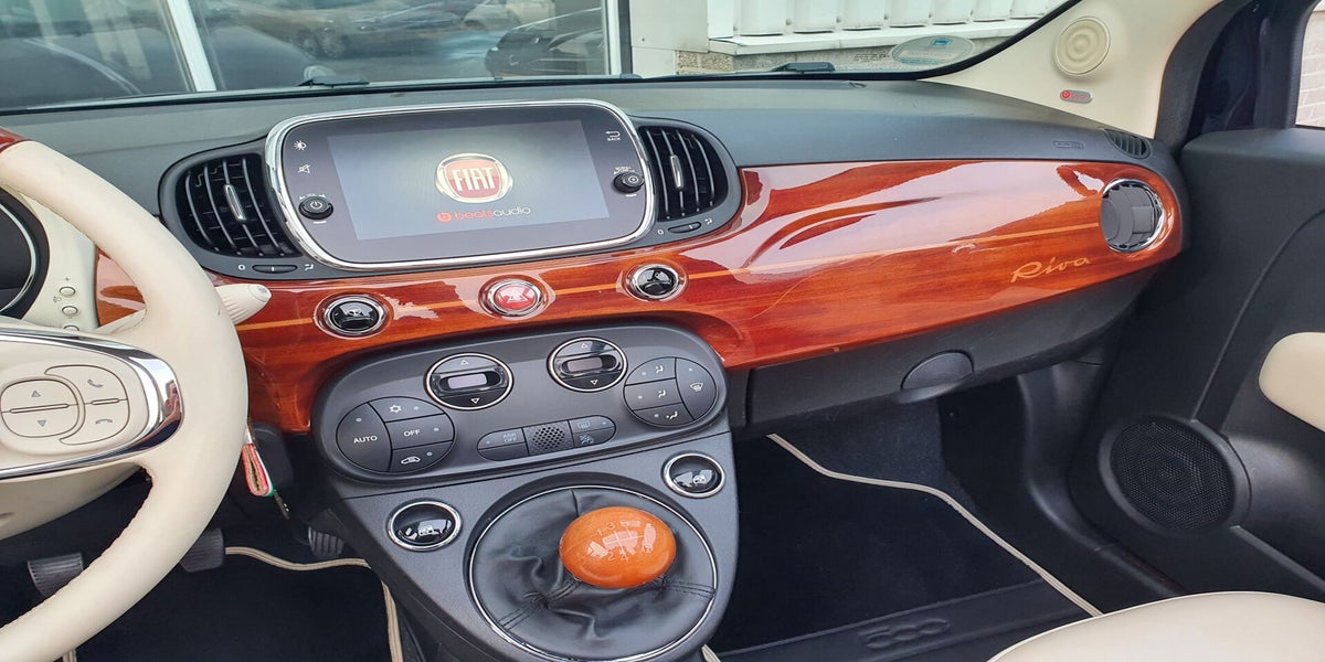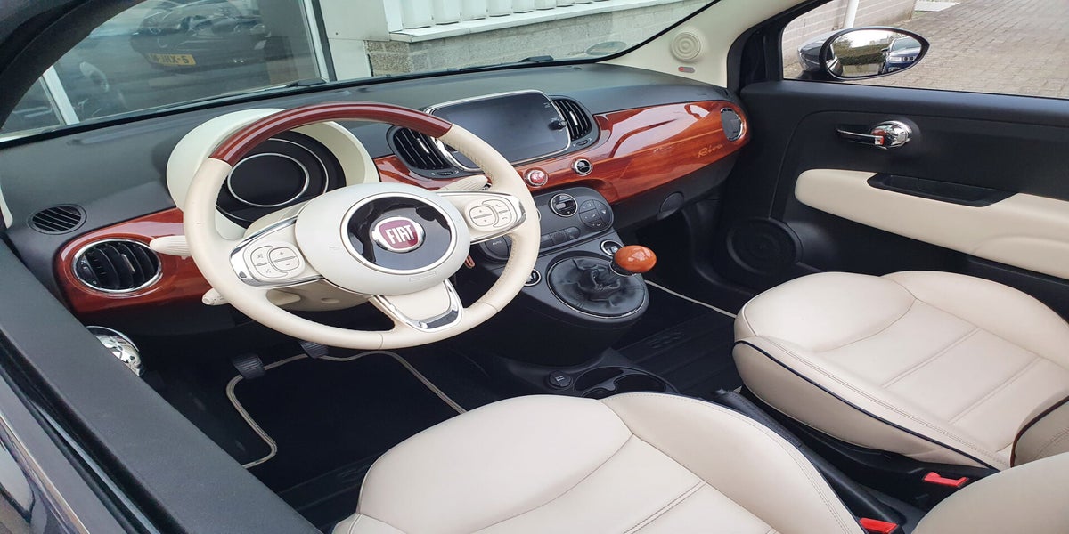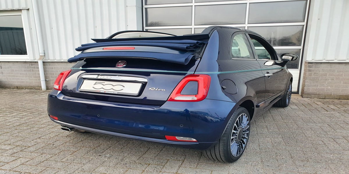 Bovenstaande Fiat 500C Riva betreft een nieuw model, waardoor de auto zowel van binnen als van buiten optisch en technisch is vernieuwd ten opzichte van het vorige model. Deze gelimiteerde uitvoering (1 van 500 exemplaren), is een samenwerking tussen Fiat en de botenbouwer Riva. De auto beschikt over diverse details als knipoog naar de handgemaakte houten Italiaanse boten, denk hierbij aan het houten dashboard, de houten details in het stuur, versnellingspook, instaplijsten en de houten details aan de buitenkant. Hiernaast te herkennen aan het crème lederen interieur en de diep donkerblauwe kleur met turquoise bies rondom de auto. De auto is uitgevoerd met een 1.2 benzine, 4-cilinder motor die een vermogen levert van 69 pk. Het voertuig beschikt over elektrische ramen en spiegels, radio met usb/aux-aansluiting, 7" Uconnect multimedia systeem met Apple Carplay/Android Auto + DAB radio, Beats geluidsinstallatie, centrale vergrendeling, climate control, cruise control, Riva boordcomputer met vernieuwde opties zoals o.a. bandenspanningsmeter, lederen stuur met stuurbediening, chrome-pakket, mistlampen, City stuur (wat zorgt voor een dubbele stuurbekrachtiging), ESP, isofix, parkeersensoren, led dagrijverlichting, airco en 16 inch originele Riva velgen.